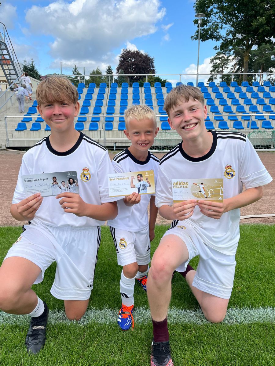 Vom 28.07.-01.08.2025 war die Fundación Real Madrid Clinic, organisiert von Kohfahl Ballstrategien, zu Gast beim SC Victoria 1914 Templin. Unter dem Motto „Play The REAL Way“ konnten sich die 34 Teilnehmer, darunter sieben bis 15-jährige Mädchen und Jungen, auf eine Kombination aus hochwertigem Fußballtraining und der Vermittlung von Werten der Fundación freuen.