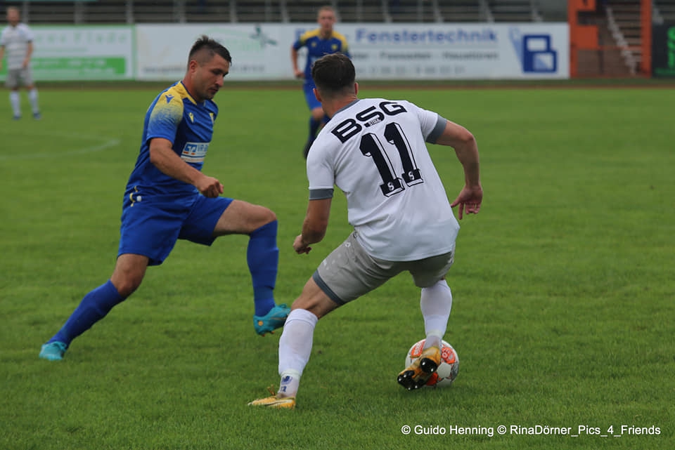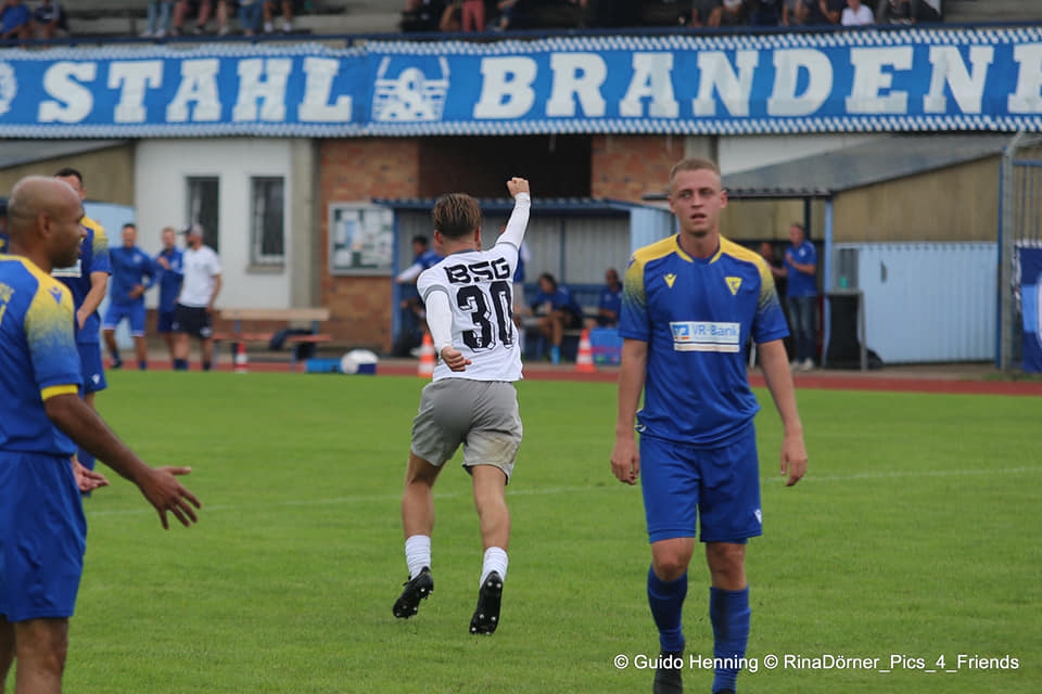 Zum ersten Mal kam es am Samstag zur Begegnung Stahl Brandenburg gegen Victoria Templin, weshalb alle Kicker auch zum ersten Mal im altehrwürdigen Stadion waren. Es war so, als würde man eine Zeitreise machen in die DDR, denn vieles hat sich seitdem nicht geändert bei der BSG Stahl. Alte Kabinen, altes Stadion, aber ganz viel Charme. Dass hier schon einmal UEFA-Cup vor 18.000 Zuschauern gespielt wurde, schien dennoch irgendwie unwirklich. Irgendwann ging dann auch das Spiel los, welches bis zum Schluss von Schmuddelwetter begleitet wurde. Victoria legte unaufgeregt los und konnte gegen die Brandenburger, die mit den schwierigen Bedingungen zu kämpfen hatten, gut mithalten. Die erste Chance gehörte auch Victoria. Maciej Czyzewski schoss einen Freistoß aufs Tor, dessen Schuss erst im Nachfassen vom Stahl-Torwart festgehalten werden konnte (5. Minute). Das Spiel war in der ersten Viertelstunde sehr ausgeglichen, da die Hausherren einige Probleme hatten auf dem schmierigen Untergrund ihr gewohntes Ballbesitzspiel aufzuziehen. Nach 20 Minuten kamen sie dann aber immer mehr in Fahrt und Victoria hatte hinten mehr zu tun. Der Druck der Brandenburger wuchs und der erste Treffer folgte. Eine Flanke von links konnte nicht richtig geklärt und Marvin Krause schoss per Volleyschuss aus acht Metern ins Tor (23.). Nur wenige Minuten dann der nächste Schreckmoment. Neuzugang Maxim Zajcenko lag nach einem Zweikampf plötzlich am Boden und zeigte sofort an, dass er Hilfe braucht. Mit einer Trage und einer schweren Knieverletzung musste er dann vom Platz getragen werden. An dieser Stelle wünschen wir dir natürlich alles Gute und eine schnelle Genesung, Maxim! Für Maxim kam dann Bright Ibeneme zu seinem Pflichtspieldebüt. Bis zur Halbzeit passierte nicht mehr viel, wobei Victoria immer wieder gute Konterchancen hatte. Doch wurde auch immer wieder der Ball zu schnell hergeschenkt, weshalb die Situationen dann verpufften. 0:1 nach den ersten 45 Minuten war dennoch ein achtbares Ergebnis und machte Mut für die zweite Hälfte.